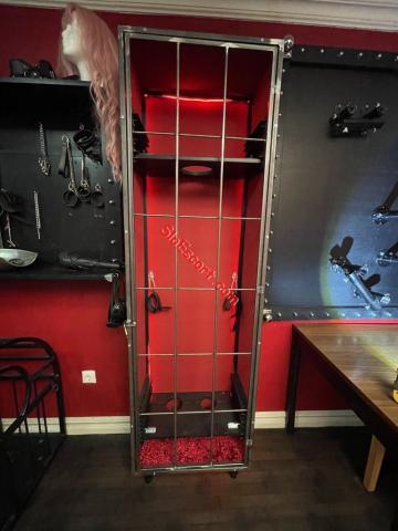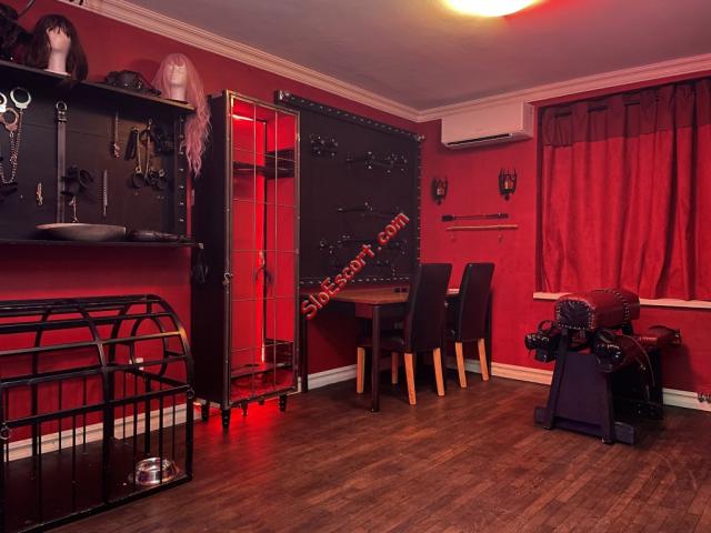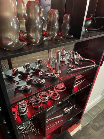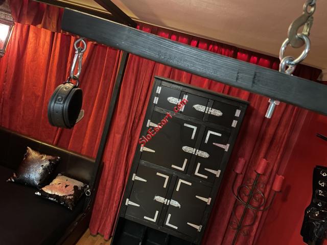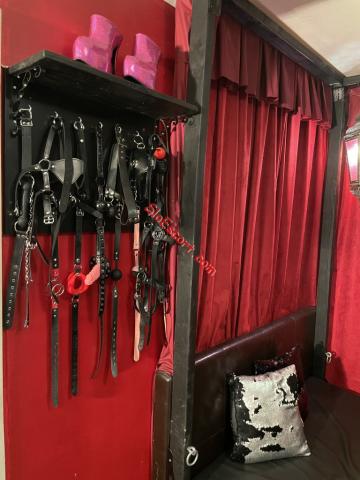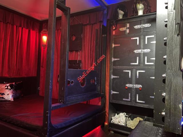 -Bogato opremljen studio z raznovrstnimi pripomočki in rekviziti za BDSM.