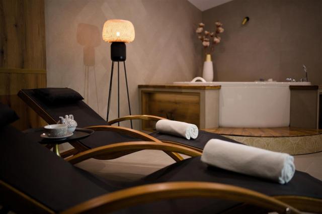V prostoru vas čaka finska savna, prostorna masažna kad z zračno in vodno masažo, funkcijo Ozon ter barvno svetlobno terapijo. Med obiskom boste lahko počivali na ležalnikih ali pa se sprostili na udobni postelji.